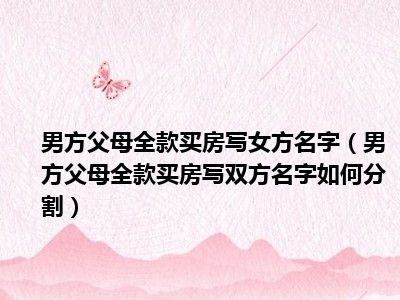 目前大家应该是对男方父母全款买房写双方名字如何分割比较感兴趣的,所以今天CC就来为大家整理了一些关于男方父母全款买房写双方名字如何分割方面的相关知识来分享给大家,希望大家会喜欢哦。