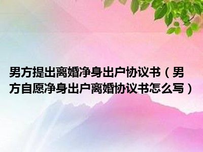 目前大家应该是对男方自愿净身出户离婚协议书怎么写比较感兴趣的,所以今天CC就来为大家整理了一些关于男方自愿净身出户离婚协议书怎么写方面的相关知识来分享给大家,希望大家会喜欢哦。