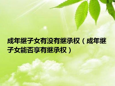 目前大家应该是对成年继子女能否享有继承权比较感兴趣的,所以今天CC就来为大家整理了一些关于成年继子女能否享有继承权方面的相关知识来分享给大家,希望大家会喜欢哦。