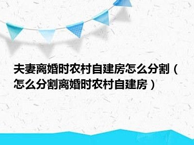目前大家应该是对怎么分割离婚时农村自建房比较感兴趣的,所以今天CC就来为大家整理了一些关于怎么分割离婚时农村自建房方面的相关知识来分享给大家,希望大家会喜欢哦。