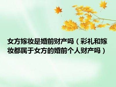 目前大家应该是对彩礼和嫁妆都属于女方的婚前个人财产吗比较感兴趣的,所以今天CC就来为大家整理了一些关于彩礼和嫁妆都属于女方的婚前个人财产吗方面的相关知识来分享给大家,希望大家会喜欢哦。