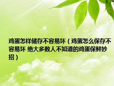 目前大家应该是对鸡蛋怎么保存不容易坏 绝大多数人不知道的鸡蛋保鲜妙招比较感兴趣的,所以今天小编CC就来为大家整理了一些关于鸡蛋怎么保存不容易坏 绝大多数人不知道的鸡蛋保鲜妙招方面的相关知识来分享给大家,希望大家会喜欢哦。