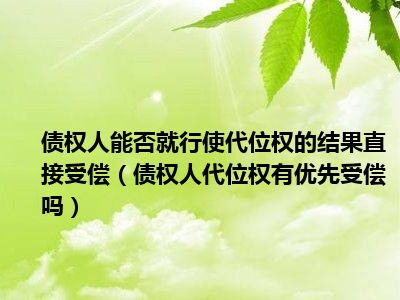 目前大家应该是对债权人代位权有优先受偿吗比较感兴趣的,所以今天CC就来为大家整理了一些关于债权人代位权有优先受偿吗方面的相关知识来分享给大家,希望大家会喜欢哦。