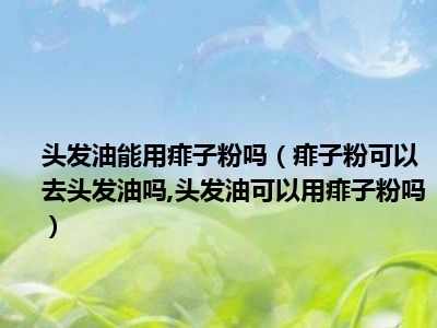 目前大家应该是对痱子粉可以去头发油吗,头发油可以用痱子粉吗比较感兴趣的,所以今天小编CC就来为大家整理了一些关于痱子粉可以去头发油吗,头发油可以用痱子粉吗方面的相关知识来分享给大家,希望大家会喜欢哦。