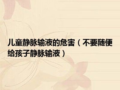目前大家应该是对不要随便给孩子静脉输液比较感兴趣的,所以今天小编CC就来为大家整理了一些关于不要随便给孩子静脉输液方面的相关知识来分享给大家,希望大家会喜欢哦。