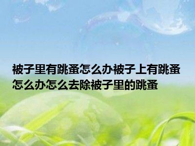 目前大家应该是对被子里有跳蚤怎么办,被子上有跳蚤怎么办,怎么清除被子里的跳蚤比较感兴趣的,所以今天小编CC就来为大家整理了一些关于被子里有跳蚤怎么办,被子上有跳蚤怎么办,怎么清除被子里的跳蚤方面的相关知识来分享给大家,希望大家会喜欢哦。