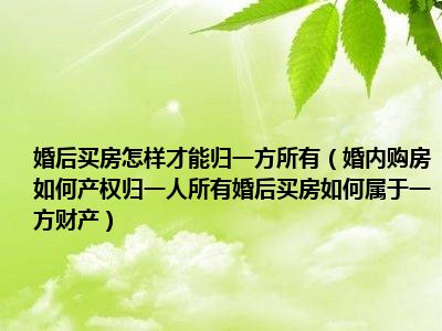 导读 目前大家应该是对婚内购房如何产权归一人所有婚后买房如何属于一方财产比较感兴趣的,所以今天好房网小编CC就来为大家整理了一些关于婚内购