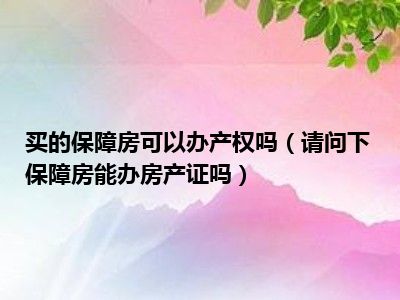 导读 目前大家应该是对请问下保障房能办房产证吗比较感兴趣的,所以今天好房网小编CC就来为大家整理了一些关于请问下保障房能办房产证吗方面的相