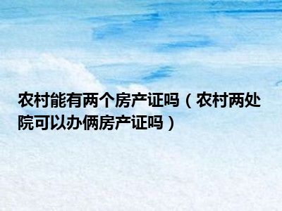 导读 目前大家应该是对农村两处院可以办俩房产证吗比较感兴趣的,所以今天好房网小编CC就来为大家整理了一些关于农村两处院可以办俩房产证吗方面