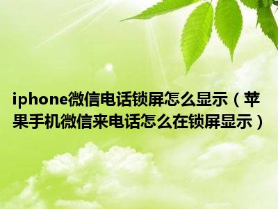 导读 1、苹果手机微信来电话怎么在锁屏显示?2、苹果手机微信通话在微信6 6 1版本中只能显示在锁屏上,而在8 0 13版本以上,该功能不可用。如果