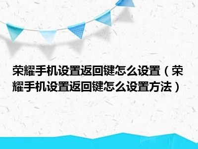 1、 荣耀手机设置返回键怎么设置方法?