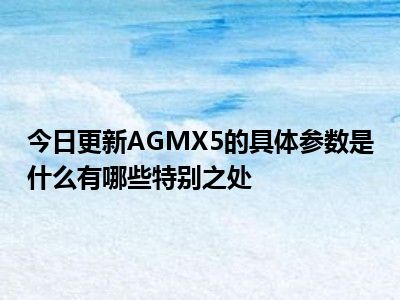 目前上述的内容应该能够为大家解答出大家对于AGMX5的具体参数是什么有哪些特别之处的疑惑了,所以如果大家还想要了解更多的知识内容,也可以关注本站其他文章进行了解哦。