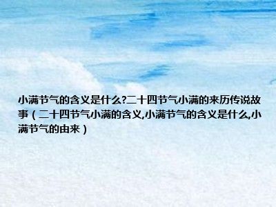 导读目前大家应该是对二十四节气小满的含义,小满节气的含义是什么,小满节气的由来比较感兴趣的,所以今天小编CC就来为大家整理了一些关于二十四...