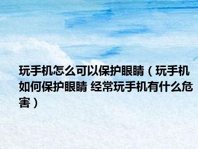目前大家应该是对玩手机如何保护眼睛 经常玩手机有什么危害比较感兴趣的,所以今天小编CC就来为大家整理了一些关于玩手机如何保护眼睛 经常玩手机有什么危害方面的相关知识来分享给大家,希望大家会喜欢哦。