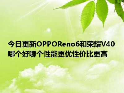 目前上述的内容应该能够为大家解答出大家对于OPPOReno6和荣耀V40哪个好,哪个性能更优性价比更高的疑惑了,所以如果大家还想要了解更多的知识内容,也可以关注本站其他文章进行了解哦。