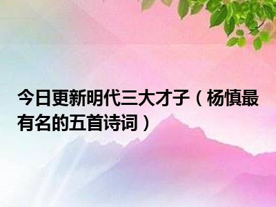 目前上述的内容应该能够为大家解答出大家对于明代三大才子(杨慎最有名的五首诗词)的疑惑了,所以如果大家还想要了解更多的知识内容,也可以关注本站其他文章进行了解哦。