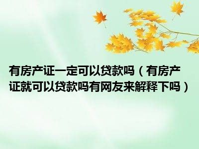 导读 目前大家应该是对有房产证就可以贷款吗有网友来解释下吗比较感兴趣的,所以今天好房网小编CC就来为大家整理了一些关于有房产证就可以贷款吗