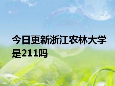 浙江农林大学不是211。浙江农林大学,简称“浙农林大”,是浙江省人民政府和国家林业和草原局共建高校,浙江省重点建设高校,入选国家 “111计划”、“卓越农林人才教育培养计划”。