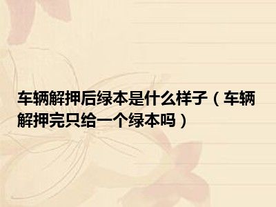 目前大家应该是对车辆解押完只给一个绿本吗比较感兴趣的,所以今天CC就来为大家整理了一些关于车辆解押完只给一个绿本吗方面的相关知识来分享给大家,希望大家会喜欢哦。