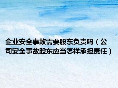 目前大家应该是对公司安全事故股东应当怎样承担责任比较感兴趣的,所以今天CC就来为大家整理了一些关于公司安全事故股东应当怎样承担责任方面的相关知识来分享给大家,希望大家会喜欢哦。
