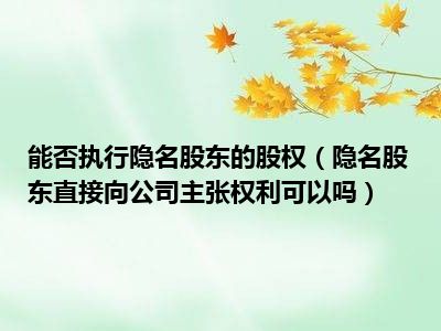 目前大家应该是对“隐名股东”直接向公司主张权利可以吗比较感兴趣的,所以今天CC就来为大家整理了一些关于“隐名股东”直接向公司主张权利可以吗方面的相关知识来分享给大家,希望大家会喜欢哦。