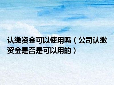 目前大家应该是对公司认缴资金是否是可以用的比较感兴趣的,所以今天CC就来为大家整理了一些关于公司认缴资金是否是可以用的方面的相关知识来分享给大家,希望大家会喜欢哦。