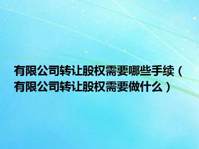 目前大家应该是对有限公司转让股权需要做什么比较感兴趣的,所以今天CC就来为大家整理了一些关于有限公司转让股权需要做什么方面的相关知识来分享给大家,希望大家会喜欢哦。