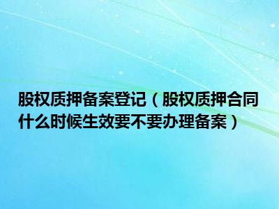 目前大家应该是对股权质押合同什么时候生效,要不要办理备案比较感兴趣的,所以今天CC就来为大家整理了一些关于股权质押合同什么时候生效,要不要办理备案方面的相关知识来分享给大家,希望大家会喜欢哦。