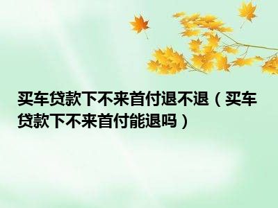 目前大家应该是对买车贷款下不来首付能退吗比较感兴趣的,所以今天CC就来为大家整理了一些关于买车贷款下不来首付能退吗方面的相关知识来分享给大家,希望大家会喜欢哦。