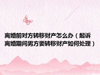 目前大家应该是对起诉离婚期间男方要转移财产如何处理比较感兴趣的,所以今天CC就来为大家整理了一些关于起诉离婚期间男方要转移财产如何处理方面的相关知识来分享给大家,希望大家会喜欢哦。
