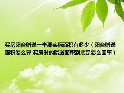 导读 目前大家应该是对阳台赠送面积怎么算 买房时的赠送面积到底是怎么回事比较感兴趣的,所以今天好房网小编CC就来为大家整理了一些关于阳台赠