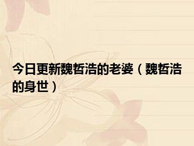 目前上述的内容应该能够为大家解答出大家对于魏哲浩的老婆(魏哲浩的身世)的疑惑了,所以如果大家还想要了解更多的知识内容,也可以关注本站其他文章进行了解哦。