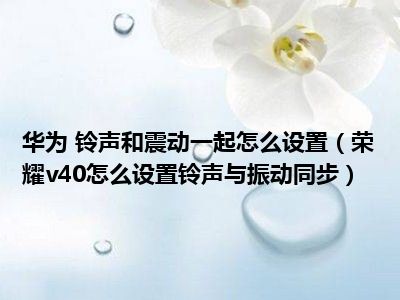 导读 1、荣耀v40怎么设置铃声与振动同步?2、1 单击手机设置菜单中的[声音和振动]选项。3、2 单击[来电铃声]。4、3 单击[振动]。5、4 选择[与铃