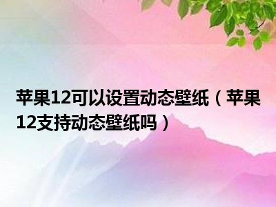 1、 苹果12支持动态壁纸吗