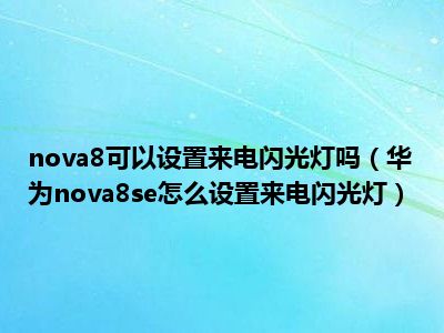 导读 1、华为nova8se怎么设置来电闪光灯2、华为nova8se没有通话闪充的功能,可以去华为应用市场下载安装第三方应用,比如通话闪充、通话秀秀、炫