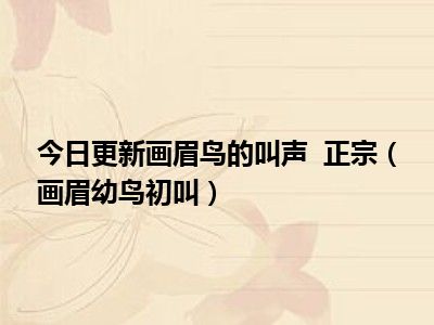 目前上述的内容应该能够为大家解答出大家对于画眉鸟的叫声 正宗(画眉幼鸟初叫)的疑惑了,所以如果大家还想要了解更多的知识内容,也可以关注本站其他文章进行了解哦。