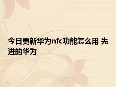 目前上述的内容应该能够为大家解答出大家对于华为nfc功能怎么用 先进的华为的疑惑了,所以如果大家还想要了解更多的知识内容,也可以关注本站其他文章进行了解哦。