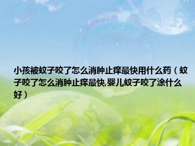 目前大家应该是对蚊子咬了怎么消肿止痒最快,婴儿蚊子咬了涂什么好比较感兴趣的,所以今天小编CC就来为大家整理了一些关于蚊子咬了怎么消肿止痒最快,婴儿蚊子咬了涂什么好方面的相关知识来分享给大家,希望大家会喜欢哦。