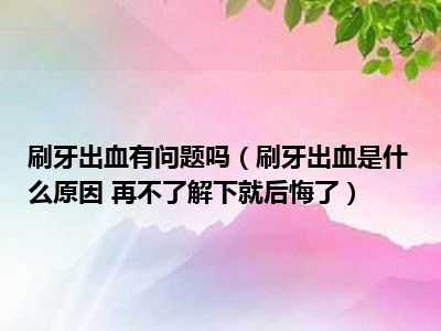 目前大家应该是对刷牙出血是什么原因 再不了解下就后悔了比较感兴趣的,所以今天小编CC就来为大家整理了一些关于刷牙出血是什么原因 再不了解下就后悔了方面的相关知识来分享给大家,希望大家会喜欢哦。