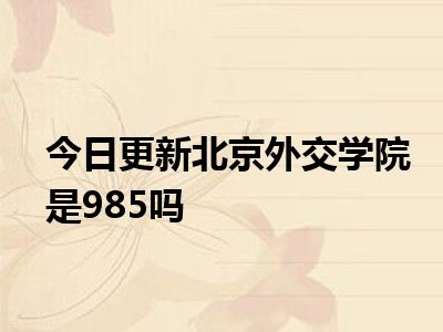 北京外交学院不是985。北京外交学院一般指外交学院。外交学院,简称“外院”,是外交部唯一直属高校 ,财政部6所“小规模试点高校“之一,国家首批“世界一流学科建设高校”。