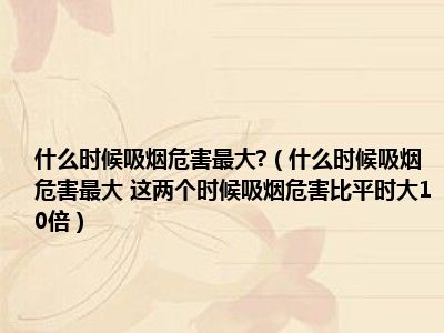 目前大家应该是对什么时候吸烟危害最大 这两个时候吸烟危害比平时大10倍比较感兴趣的,所以今天小编CC就来为大家整理了一些关于什么时候吸烟危害最大 这两个时候吸烟危害比平时大10倍方面的相关知识来分享给大家,希望大家会喜欢哦。