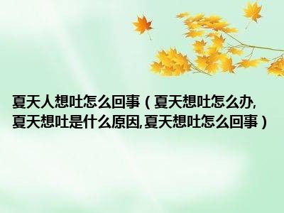 目前大家应该是对夏天想吐怎么办,夏天想吐是什么原因,夏天想吐怎么回事比较感兴趣的,所以今天小编CC就来为大家整理了一些关于夏天想吐怎么办,夏天想吐是什么原因,夏天想吐怎么回事方面的相关知识来分享给大家,希望大家会喜欢哦。
