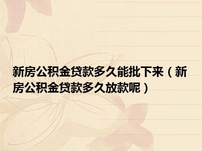 公积金贷款资料齐全一般需要1个月左右能放款。 公积金办理流程: 贷款人申请住房公积金贷款需到银行提出书面申请,填写住房公积金贷款申请表并如实提供下列资料: (一)申请人及配偶住房公积金缴存证明; (二)申请人及配偶身份证明(指居民身份证、常住户口簿和其他有效居留证件),婚姻状况证明文件; (三)家庭稳定经济收入证明及其它对还款能力有影响的债权债务证明; (四)购买住房的合同、协议等有效证明文件; (五)用于担保的抵押物、质物清单、权属证明以及有处置权人同意抵押、质押的证明,有关部门出具的抵押物估价证明; (六)公积金中心要求由第三方担保人做担保,并缴纳担保费用,由借款人、贷款人及第三方担保人共同签订三方合同。 (七)公积金中心要求提供的其他资料。 对资料齐全的借款申请,银行及时受理审查,并及时报送公积金中心。 公积金中心负责审批贷款,并及时将审批结果通知银行。 银行按公积金中心审批的结果通知申请人办理贷款手续,由借款人夫妻双方与银行签订借款合同及相关的合同或协议,并将借款合同等手续送公积金中心复核,公积金中心核准后即划拨委贷基金,由受托银行按借款合同的约定按时足额发放贷款。 以住房抵押方式担保的,借款人要到房屋坐落地区的房屋产权管理部门办理房产抵押登记手续,抵押合同或协议由夫妻双方签字,以有价证券质押的,借款人将有价证券交管理部或盟中心收押保管。
