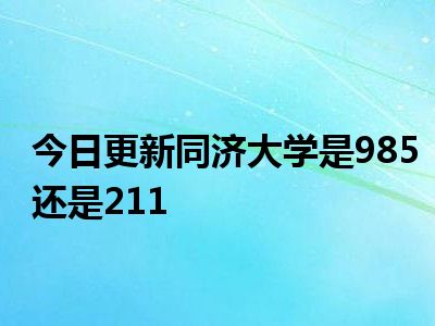 同济大学既是985也是211。同济大学简称“同济”,是中华人民共和国教育部直属,教育部与国家海洋局、上海市共建的全国重点大学;中央直管副部级建制高校,国家“世界一流大学建设高校”,国家“211工程”和“985工程”建设高校。