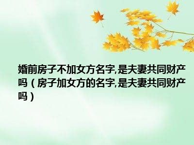 目前大家应该是对房子加女方的名字,是夫妻共同财产吗比较感兴趣的,所以今天CC就来为大家整理了一些关于房子加女方的名字,是夫妻共同财产吗方面的相关知识来分享给大家,希望大家会喜欢哦。