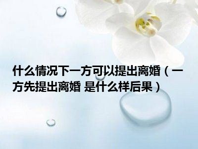 目前大家应该是对一方先提出离婚 是什么样后果比较感兴趣的,所以今天CC就来为大家整理了一些关于一方先提出离婚 是什么样后果方面的相关知识来分享给大家,希望大家会喜欢哦。