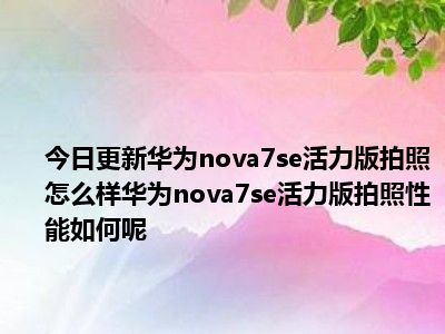 目前上述的内容应该能够为大家解答出大家对于华为nova7se活力版拍照怎么样华为nova7se活力版拍照性能如何呢的疑惑了,所以如果大家还想要了解更多的知识内容,也可以关注本站其他文章进行了解哦。