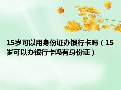 目前大家应该是对15岁可以办银行卡吗有身份证比较感兴趣的,所以今天CC就来为大家整理了一些关于15岁可以办银行卡吗有身份证方面的相关知识来分享给大家,希望大家会喜欢哦。