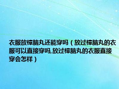 目前大家应该是对放过樟脑丸的衣服可以直接穿吗,放过樟脑丸的衣服直接穿会怎样比较感兴趣的,所以今天小编CC就来为大家整理了一些关于放过樟脑丸的衣服可以直接穿吗,放过樟脑丸的衣服直接穿会怎样方面的相关知识来分享给大家,希望大家会喜欢哦。
