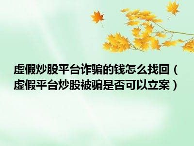目前大家应该是对虚假平台炒股被骗是否可以立案比较感兴趣的,所以今天CC就来为大家整理了一些关于虚假平台炒股被骗是否可以立案方面的相关知识来分享给大家,希望大家会喜欢哦。